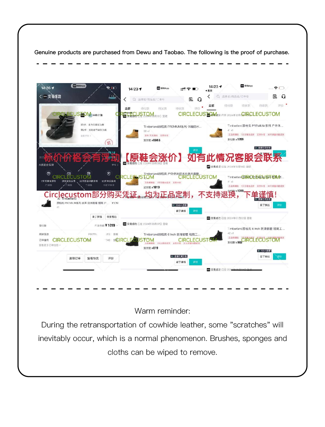 Returns will be accepted for up to 14 days of Customer’s receipt or tracking number on unworn items. You, as a Customer, are obliged to inform us via email before you return the item, only in the case of: